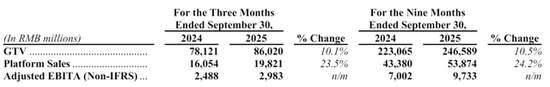 滴滴2025年第三季来自中国出行的收入为518.46亿元,较上年同期的481.84亿元增长7.6%。